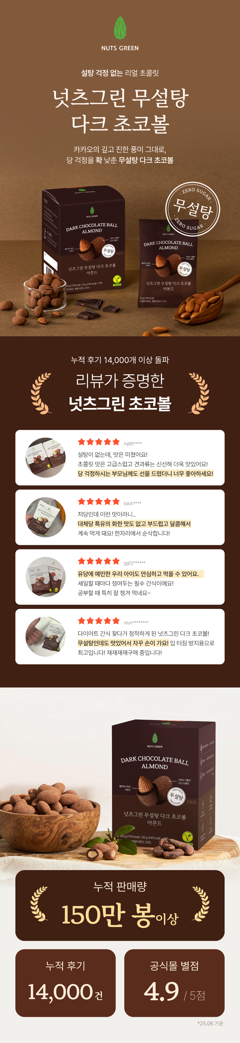 넛츠그린 무설탕 다크 초코볼 아몬드 150g 2 set