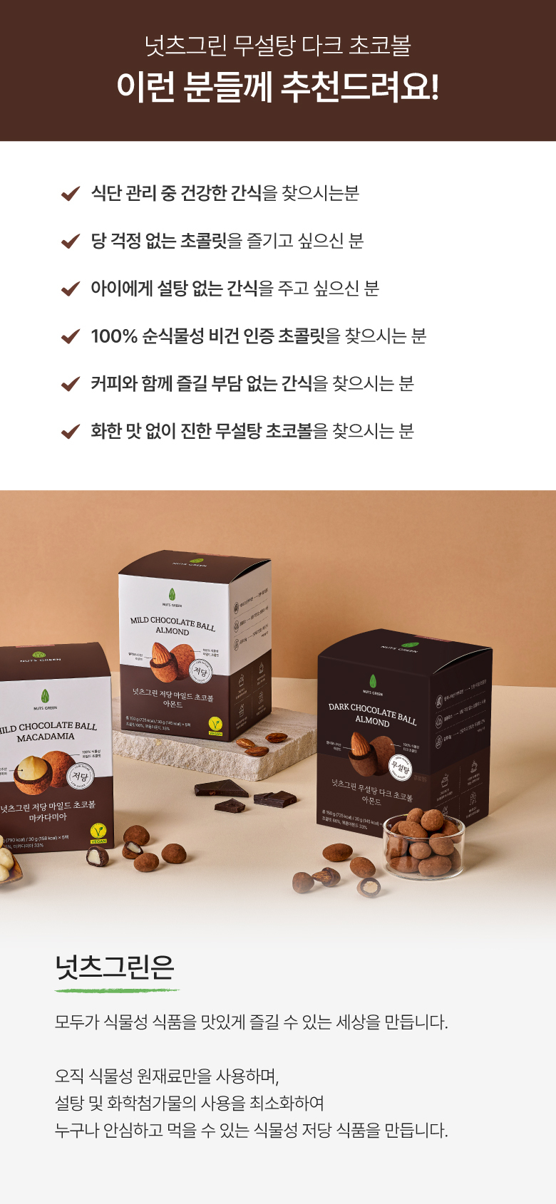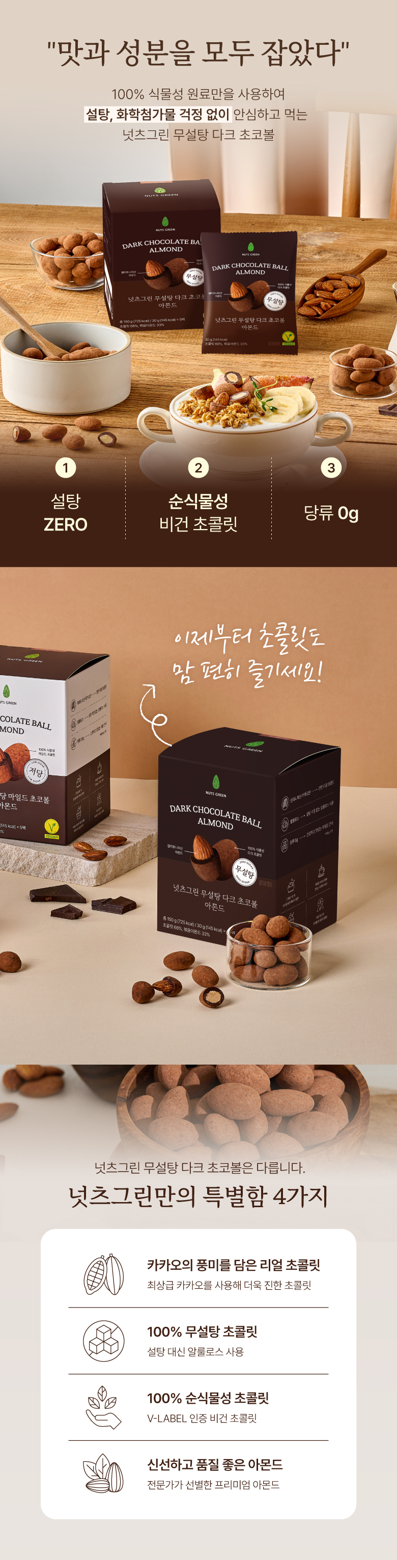 ✓ 당 0g / 100% 무설탕, 순식물성 초콜릿